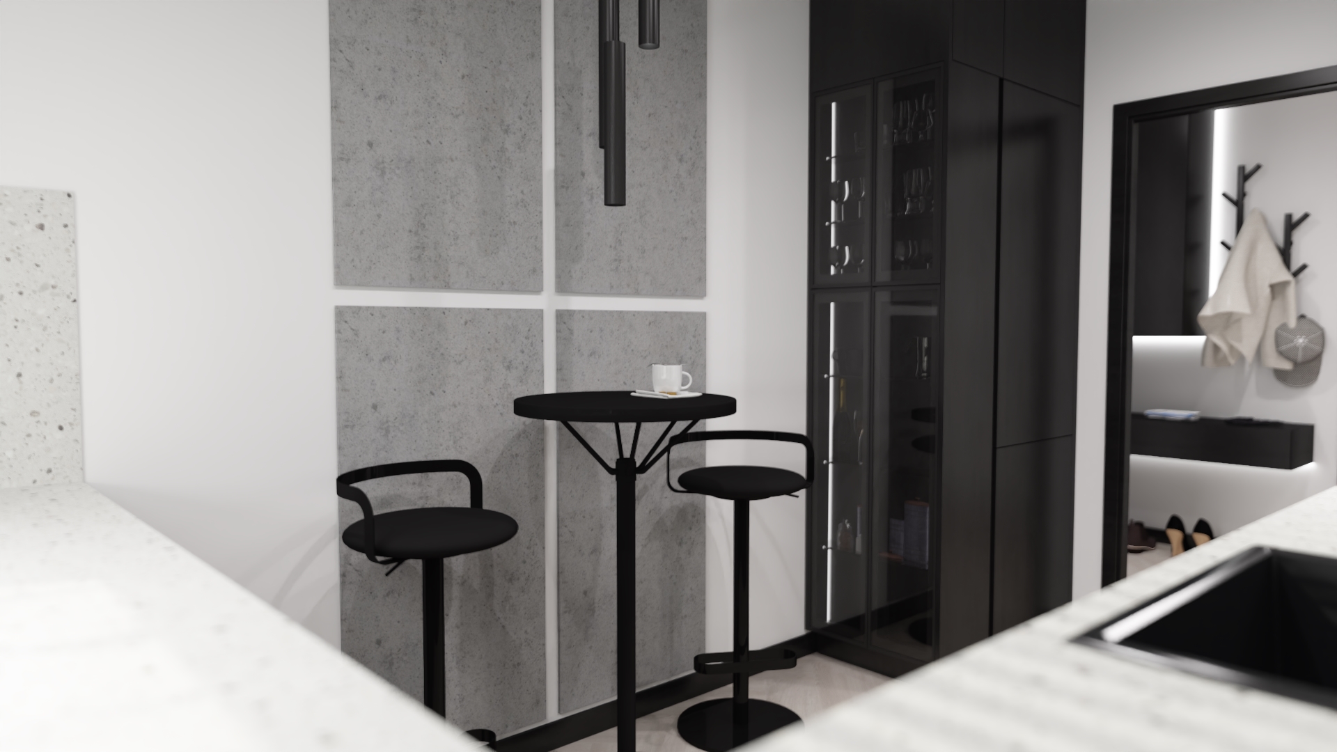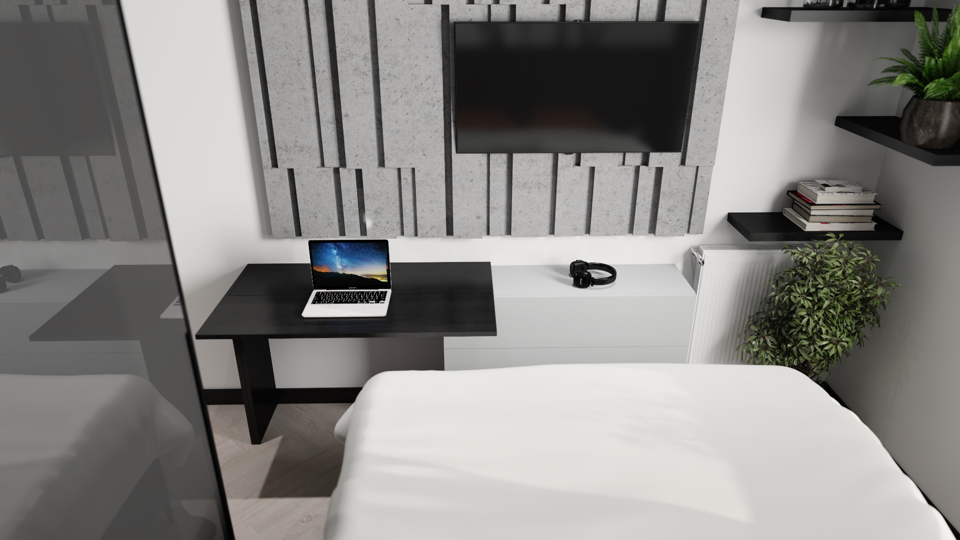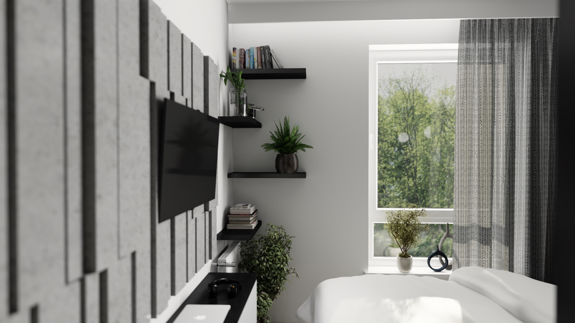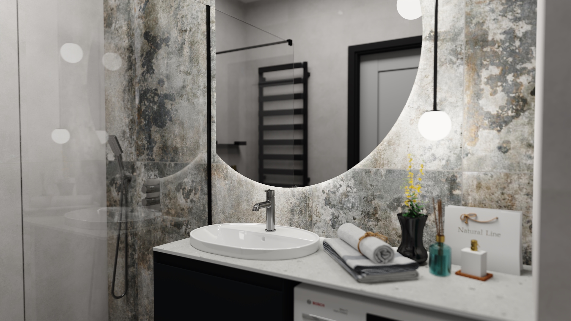 Od łazienki pełnej kontrastów, przez sypialnię z efektowną ścianą paneli, aż po salon z kuchnią – każdy detal łączy funkcjonalność z charakterem. Surowe materiały, przytulne akcenty i przemyślane rozwiązania tworzą spójną, loftową przestrzeń.