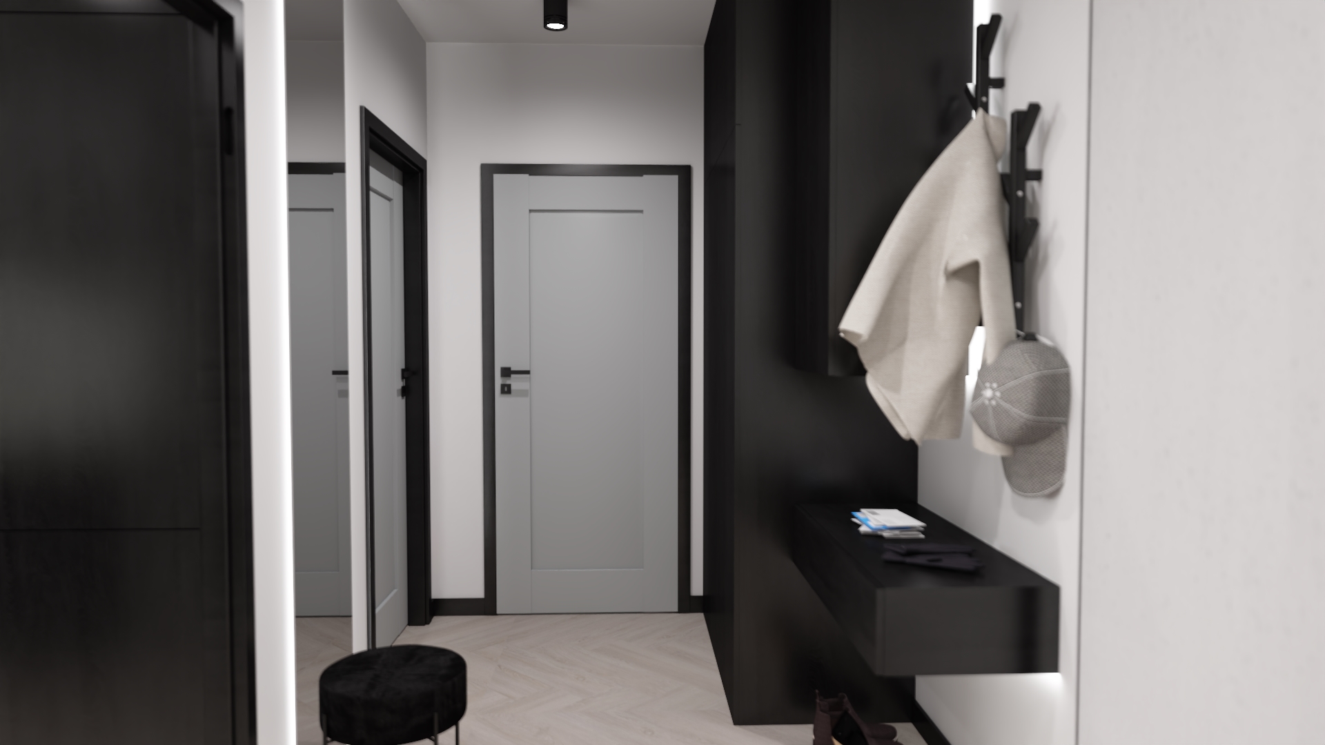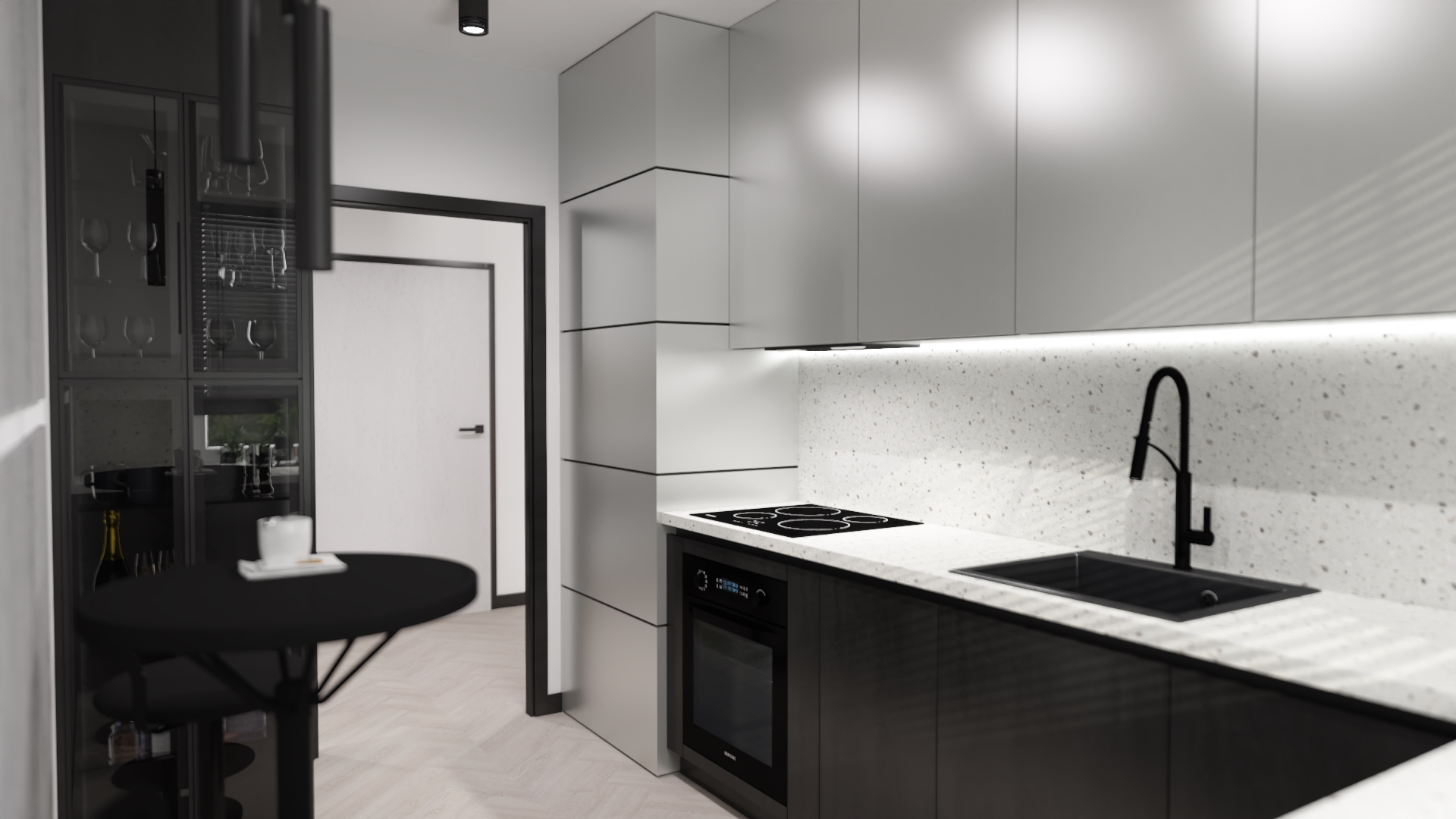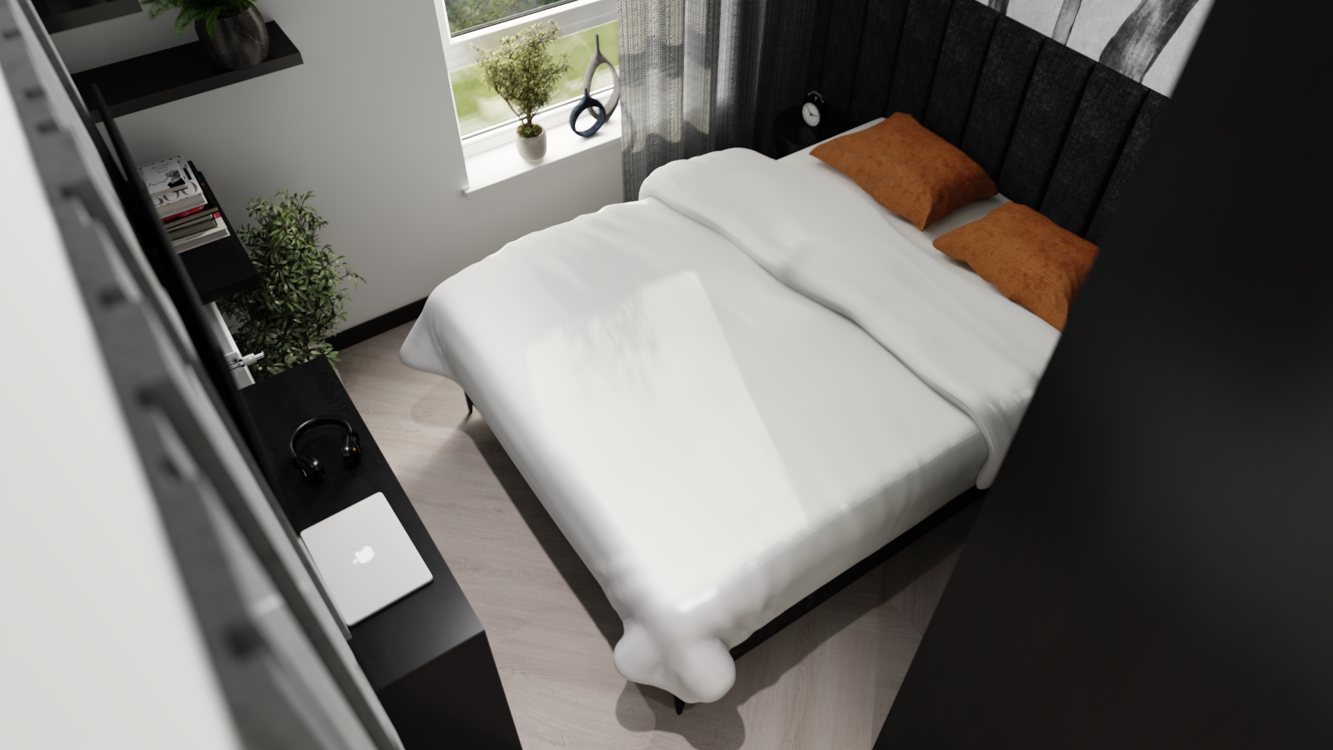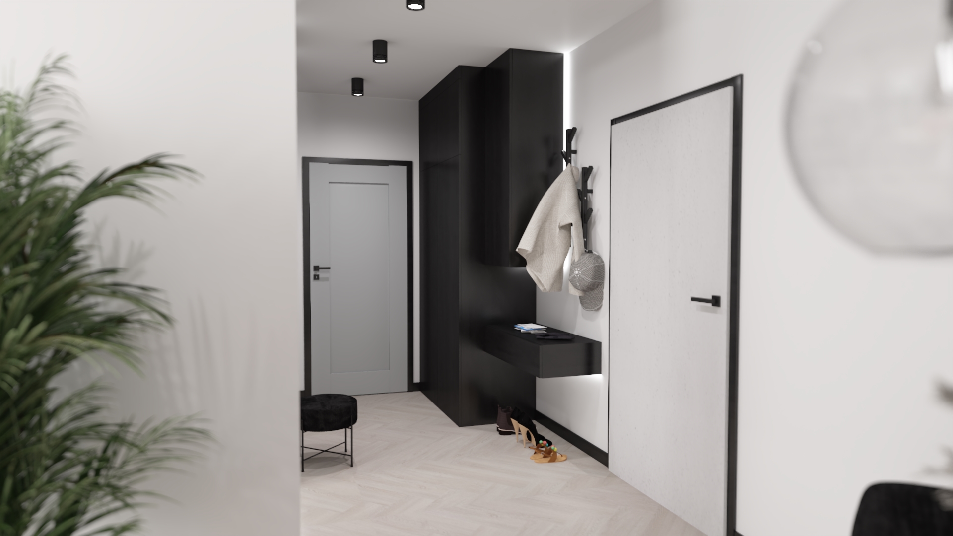 Od łazienki pełnej kontrastów, przez sypialnię z efektowną ścianą paneli, aż po salon z kuchnią – każdy detal łączy funkcjonalność z charakterem. Surowe materiały, przytulne akcenty i przemyślane rozwiązania tworzą spójną, loftową przestrzeń.